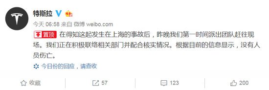 就在剛剛,特斯拉官方微博回應此事:“在得知這起發作在上海的事端后,昨夜咱們第一時間派出團隊趕往現場。咱們正在活躍聯絡相關部分并合作核實狀況。依據現在的信息顯現,沒有人員傷亡。 ”