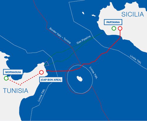 據(jù)介紹,這條高壓直流海底電纜體系將銜接意大利西西里島的Partanna至突尼斯的El Hawaria,全長大約192公里。其間,西西里島地下電纜32公里,突尼斯5公里。