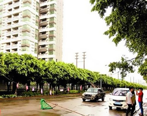 昨天上午9時許,市民吳先生驅車從騰華西路拐入嘉和北路。“剛進入嘉和北路,我就差點撞上一條通訊電纜。”吳先生稱,其時下著大雨,視野十分差,幸虧他的車剛好拐彎、車速不快,所以才沒撞上電纜。吳先生隨即打著傘下車,走到路周圍撥打報警電話。“電話剛掛,就傳來一陣急剎聲,我一看原來是一輛面包車不小心被絆住了,其時它后邊還跟著幾輛大卡車。”吳先生說。