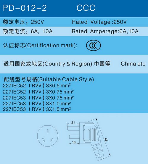 產品名稱:國標交流電源線/CCC AC POWER CORDS